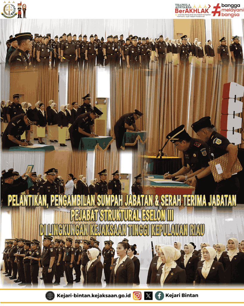 Kepala Kejaksaan Negeri Bintan Bapak Andy Sasongko, S.H.,M.Hum., beserta Para Kasi dan Kasubbag Bin mengikuti Pelantikan, Pengambilan Sumpah Jabatan dan Serah Terima Jabatan Pejabat Struktural Eselon III dilingkungan Kejaksaan Tinggi Kepulauan Riau.