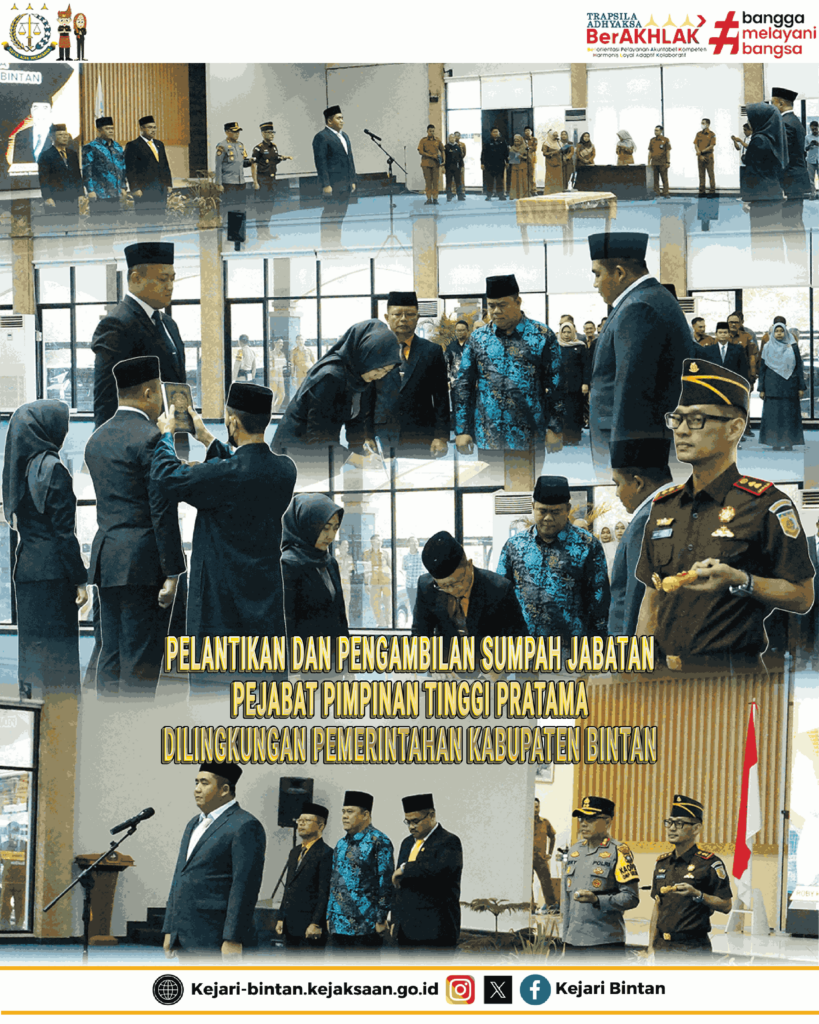 Kepala Kejaksaan Negeri Bintan Bapak Andy Sasongko, S.H., M.Hum., menghadiri kegiatan Pelantikan dan Pengambilan Sumpah Jabatan Pimpinan Tinggi Pratama di Lingkungan Pemerintah Kabupaten Bintan.